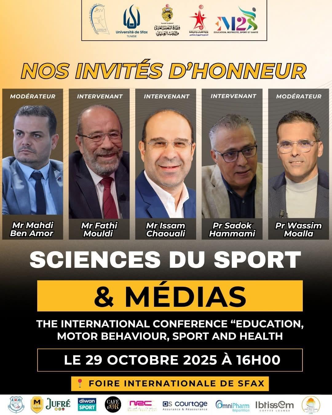 افتتح والي صفاقس السيّد محمد الحجري ورئيس جامعة صفاقس الأستاذ أحمد الحاج قاسم، صباح اليوم الأربعاء، أشغال النسخة الرابعة من هذا المؤتمر الدولي الذي ينظّمه المعهد العالي للرياضة والتربية البدنية بصفاقس، بمشاركة نخبة من الباحثين والأساتذة والخبراء والمهنيين في مجالات التربية، الرياضة، والصحة، إلى جانب حضور عدد من الوجوه الإعلامية البارزة.