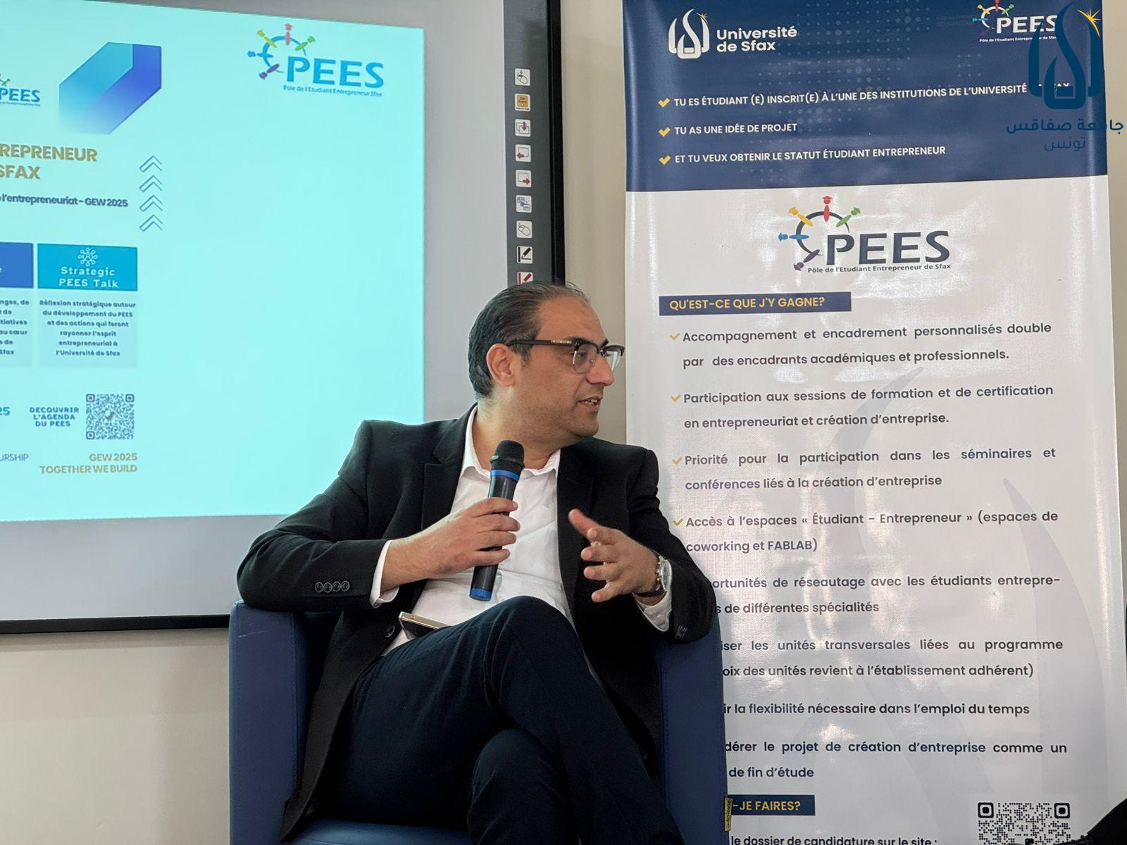 ويهدف البرنامج إلى تعزيز ثقافة المبادرة لدى الطلبة عبر مجموعة من الأنشطة الهادفة، أبرزها تكوينات متخصصة في ريادة الأعمال، وقافلة PEES التي تزور المؤسسات الجامعية لنشر الثقافة الريادية، بالإضافة إلى لقاءات Strategic PEES Talk التي تجمع طلبة الجامعة بخبراء ورياديين لمناقشة أحدث التوجّهات في عالم الابتكار.