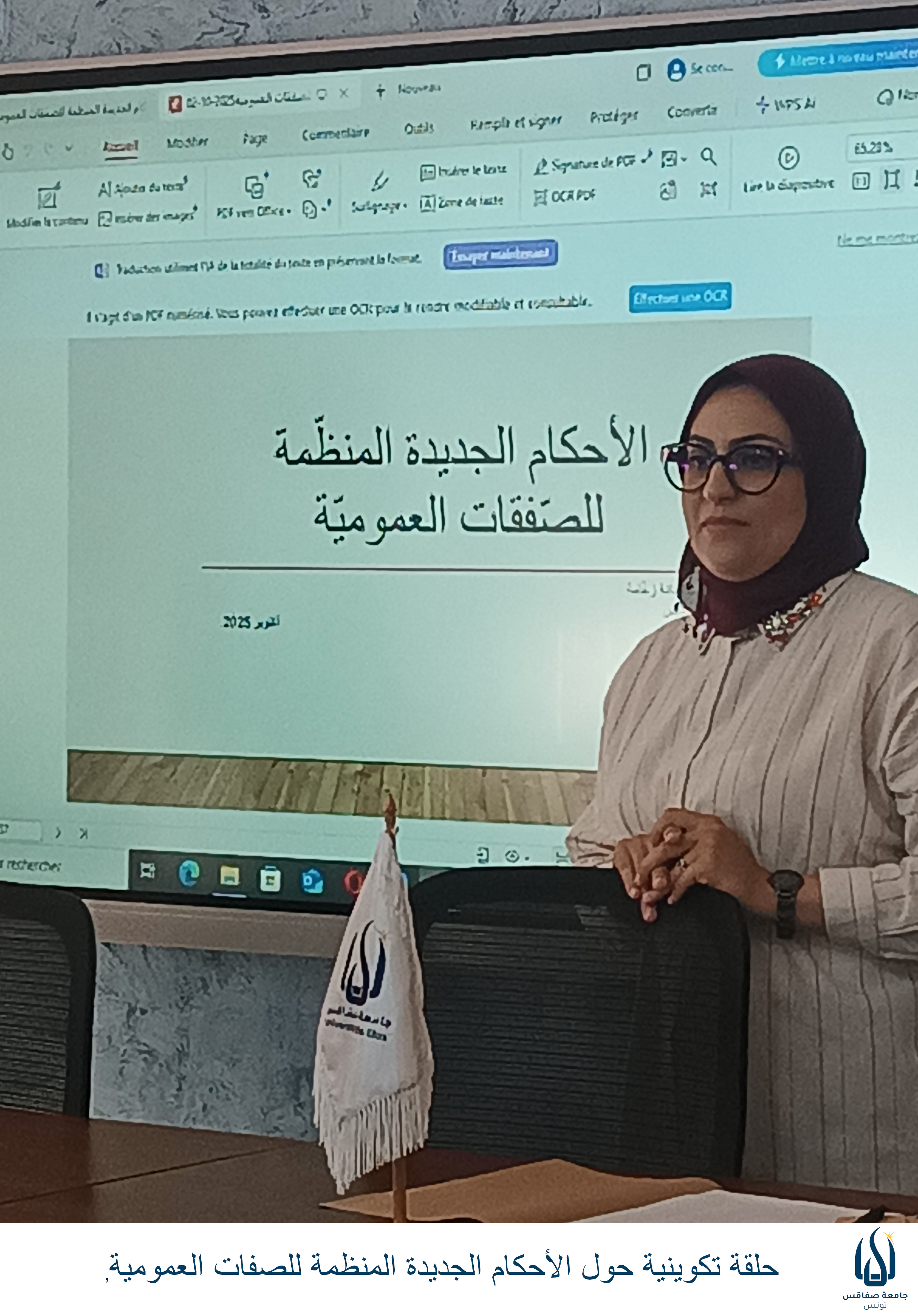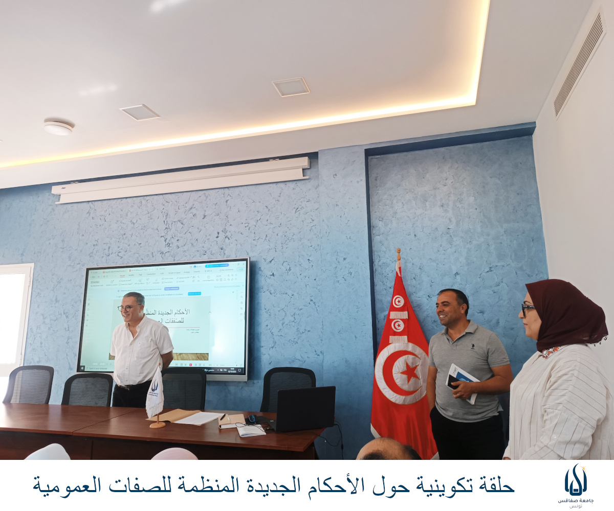 في إطار التكوين المستمر ومواكبة المستجدات القانونية ، نظمت جامعة صفاقس ورشة عمل هامة حول: "الأحكام الجديدة المنظمة للصفقات العمومية".