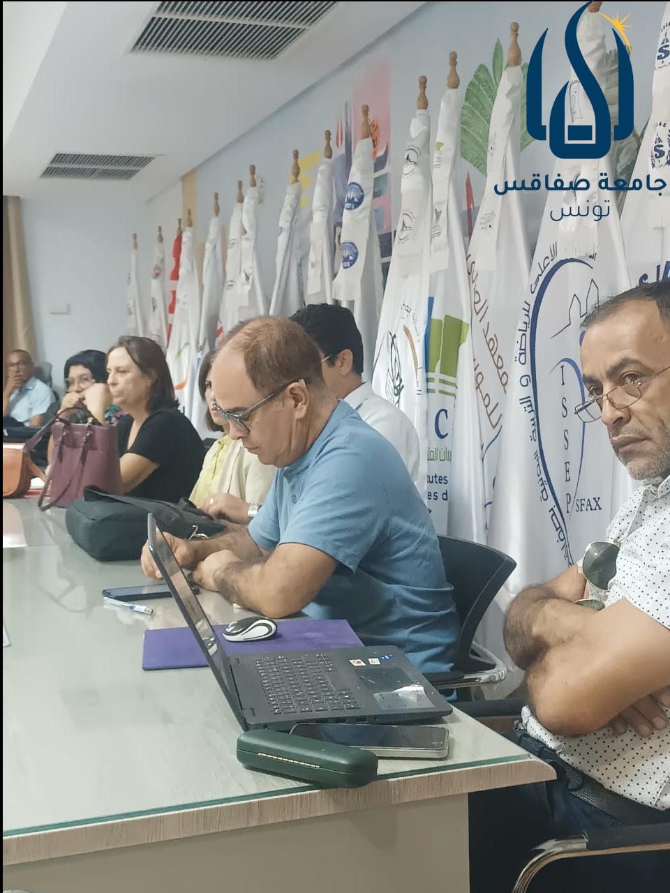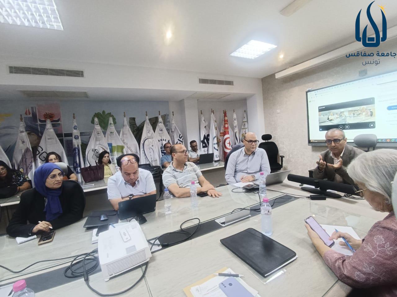 اجتماع السيد رئيس الجامعة ونائبيه، وحضور مديري وعمداء ومديري الدراسات بالمؤسسات الجامعية التابعة لجامعة صفاقس حول المنشور الجديد للتأهيل الجامعي